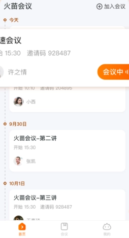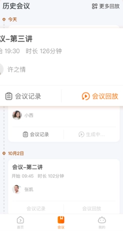 记录成员的互动情况和会议足迹。若主持或成员未出席,则无记录。