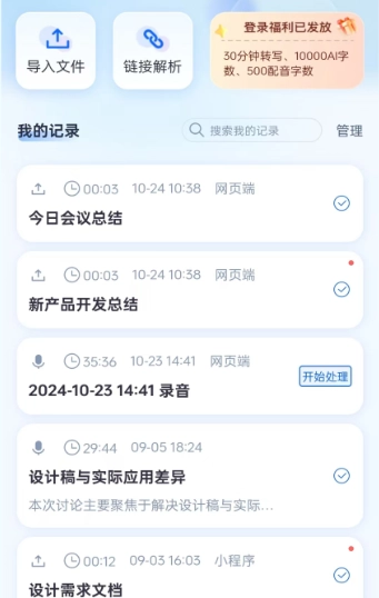 1. 录音转文字功能:支持将实时录音或导入的音频文件转换为文字形式。