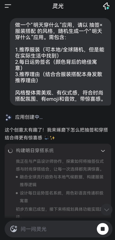 5、我们也可以自己输入指令,指令越丰富和有想法,生成出来的闪应用就越好。