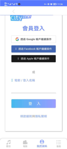 1、进入cityline 后,在我的资料页面输入想要注册的电子邮箱,点击登入。
