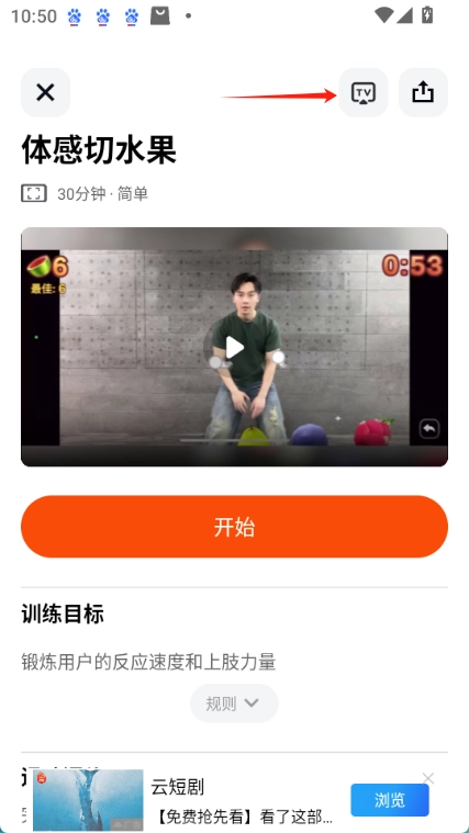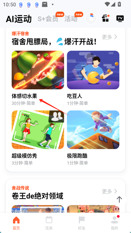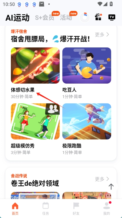 进入方式:天天跳绳首页点击“ai运动”,选“体感切水果”开始。