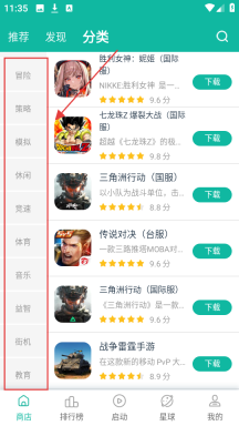 1、在商店页面,点击【分类】,可进入游戏分类页面,查看各类游戏分类啦。