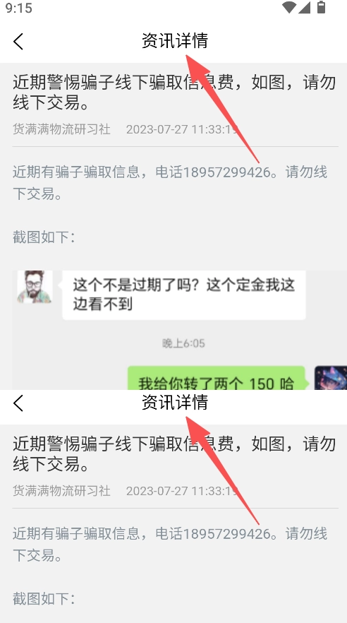 1、资讯内容贴合货运实际需求,含诈骗提醒等实用信息,增强用户在货运交易中的风险防范意识。