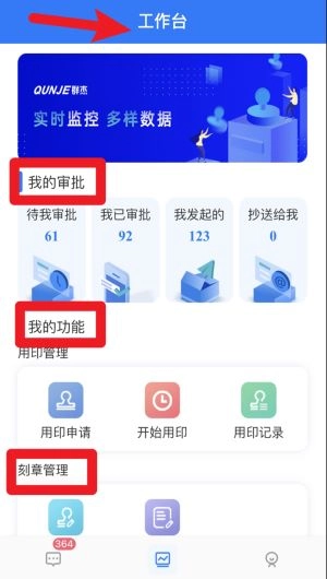 3、借助工作台能够进入我的审批、我的功能、刻章管理等模块,从而实现对用印全过程的高效管理与操作。