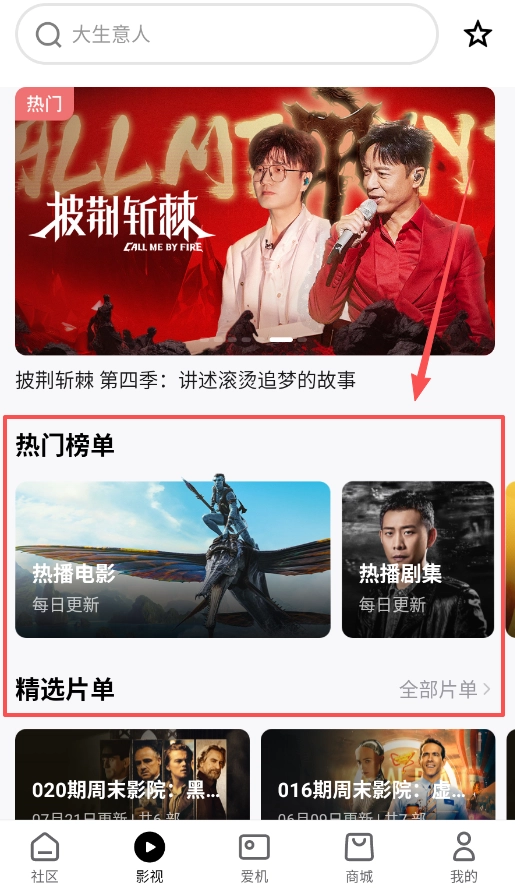 2、探索影视内容:主攻“影视”版块,它为你整理了热播电影和精选片单,内容天天更新,是你发现和观看热门节目的主要窗口。