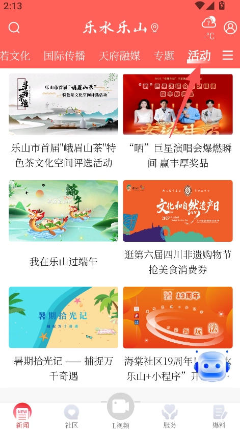 1、围绕乐山本地搭建多元板块,涵盖活动、新闻、社区等内容,呈现本地特色活动,满足本地用户的信息获取需求。