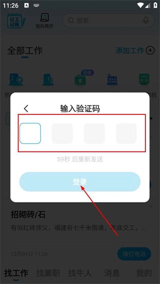3、进入输入验证码页面,填写收到的验证码后,点击登录,完成登录/注册操作。