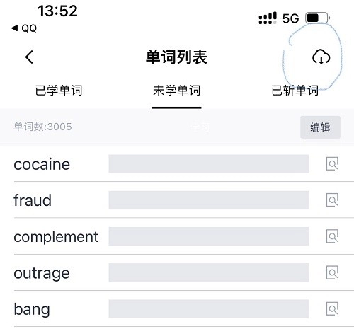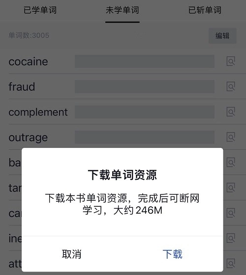 4、点击右上角的,就能离线该教材的单词包了。