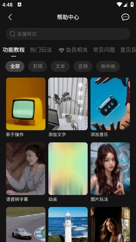 2、可以看到这里面有很多功能教程,有基础操作教程,也有常用剪辑教程。