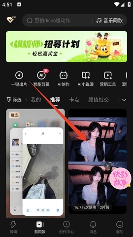 1、进入软件后,点击下方功能栏的“剪同款”。