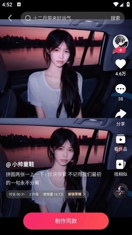 3、最后点击下方的“制作同款”,根据提示步骤就能轻松做出同款视频;要是对操作不太熟悉,也可以查看上方的操作教程,里面有详细的视频教学指导。
