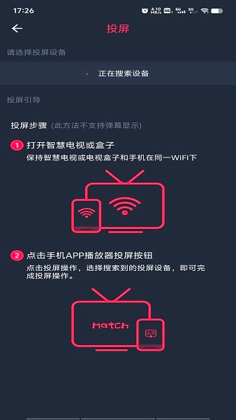 4需要注意的是,手机和投屏设备必须在同一个网络环境下才能成功连接。