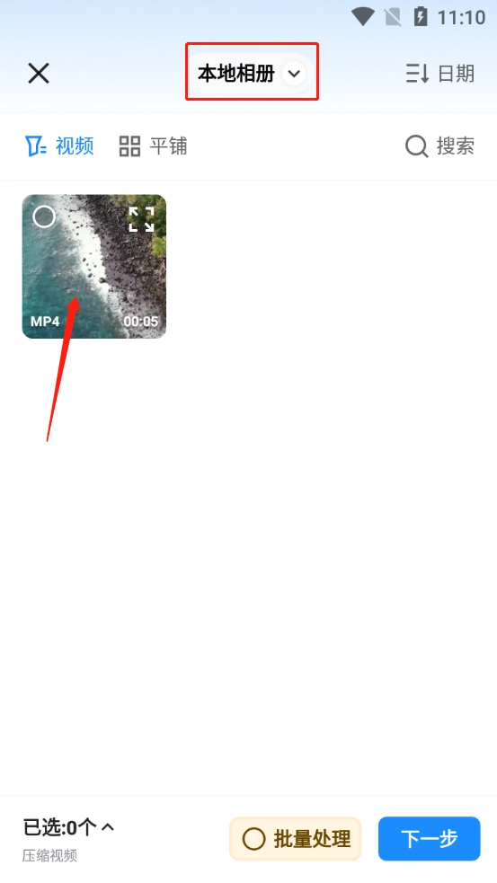 2、进入文件夹选中需要压缩的视频,点击【下一步】。