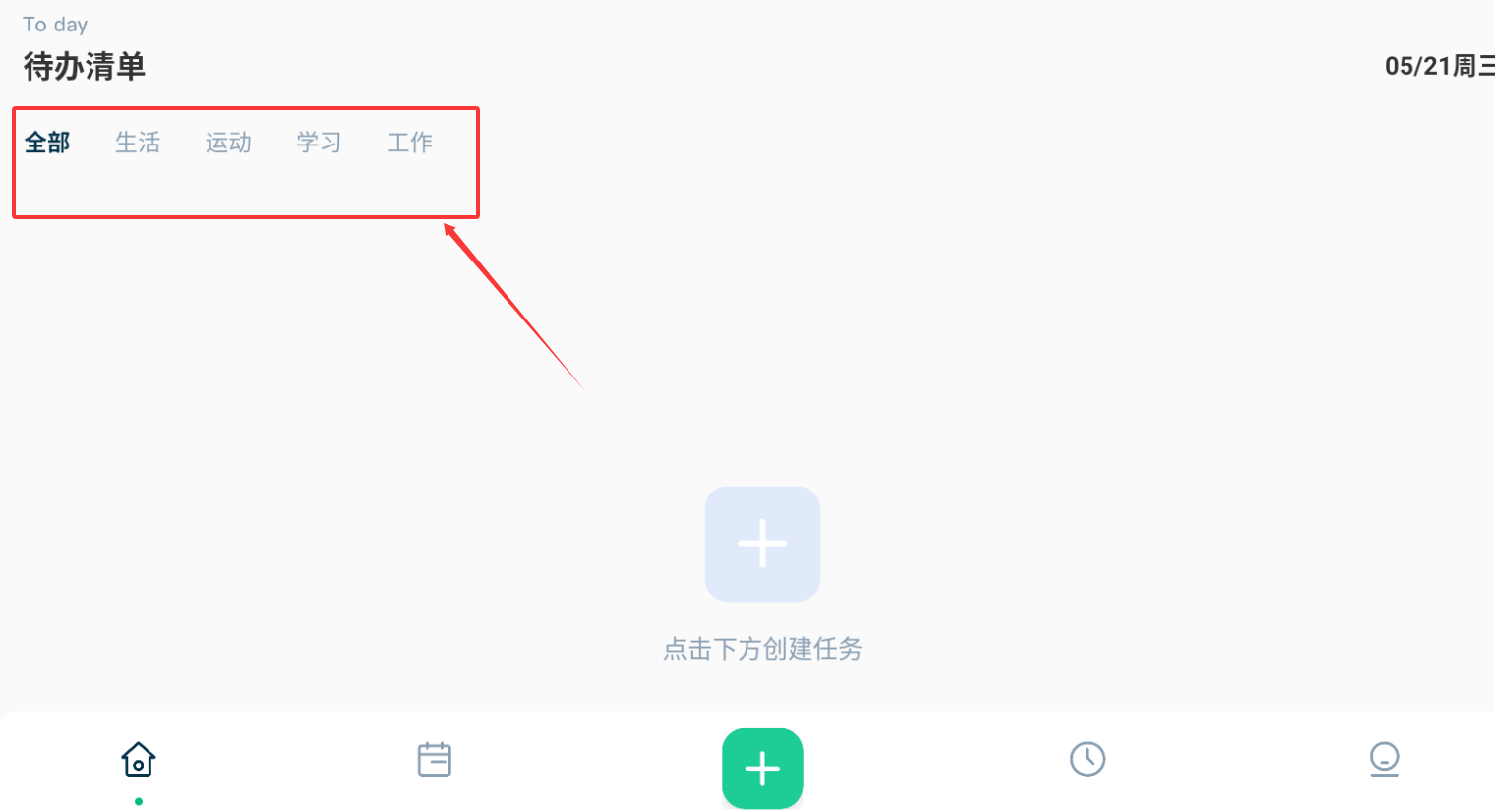 1、进入首页,待办清单中可以增加任务,每天的计划添加进入,可以实现每天计划完成。