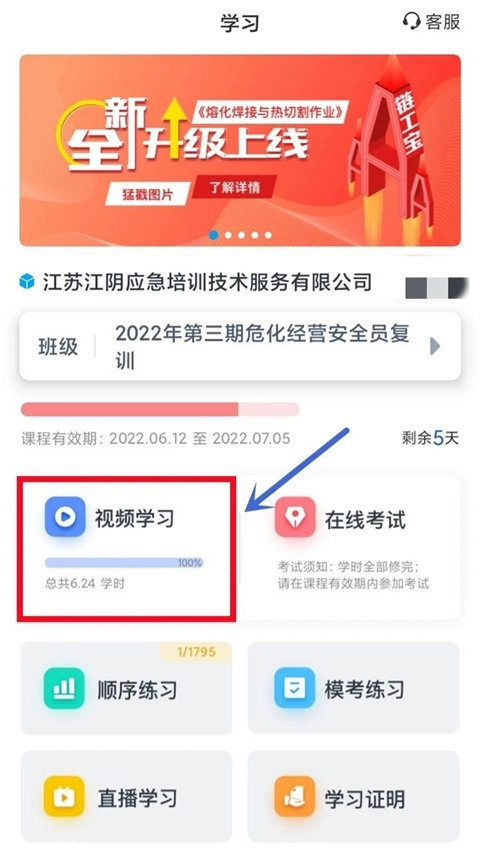 2、点击【视频学习】,根据进度条可查看自已完成学时数。