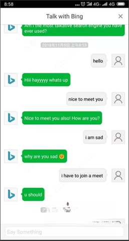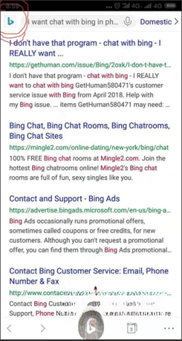 2、在搜索框里输入“ I want chat with bing in phone”这条指令;