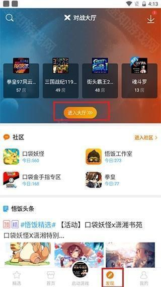 1、安装本站软件后,启动软件并进入首页,您会发现许多高质量的游戏推荐; 2、接着,在页面底部选择进入发现专区,找到上方的对战大厅,并点击“进入大厅”。