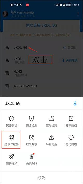 1、首先点击我们已经连接好的wifi,然后就它进行一个二维码分享即可。
