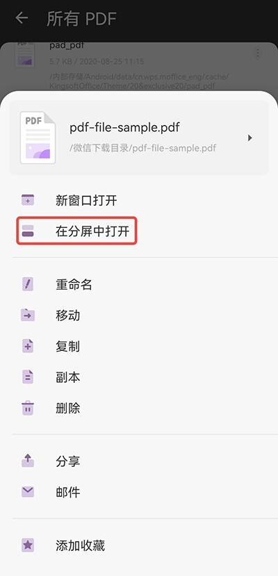 选择“在分屏中打开”选项。
