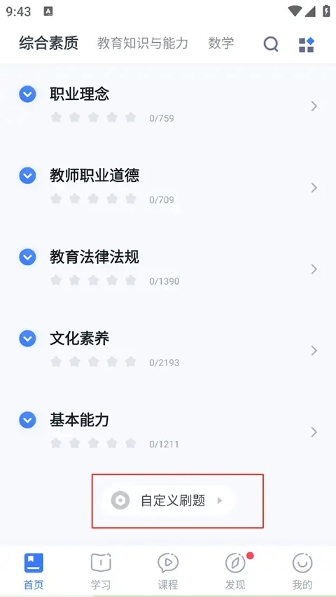 在首页下滑到最下方,点击自定义刷题。