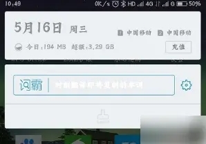 之后你会在【手机状态栏】看到金山词霸查词的通知栏显示。按下Home键返回桌面,使金山词霸保持后台运行状态。