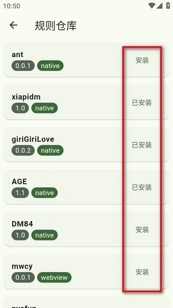 规则仓库里存放着不少规则,点击每条规则后方的“安装”按钮,就能添加该规则。