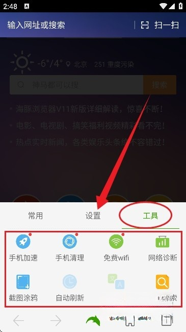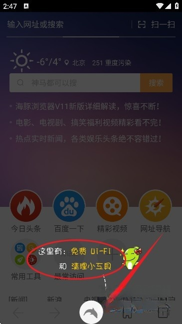 1、并安装海豚浏览器后,打开应用,界面如图所示。