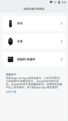 支持米动手表青春版、小米体脂秤、小米手环、小米体重秤、AMAZFIT运动手表等智能设备。