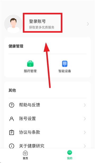 打开oppo健康研究,进入首页后点击我的