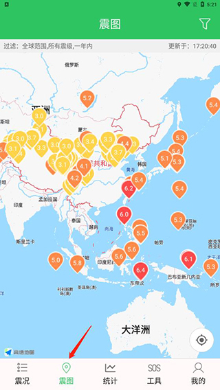 地震震级可以过滤地震的最低震级以上的数据。