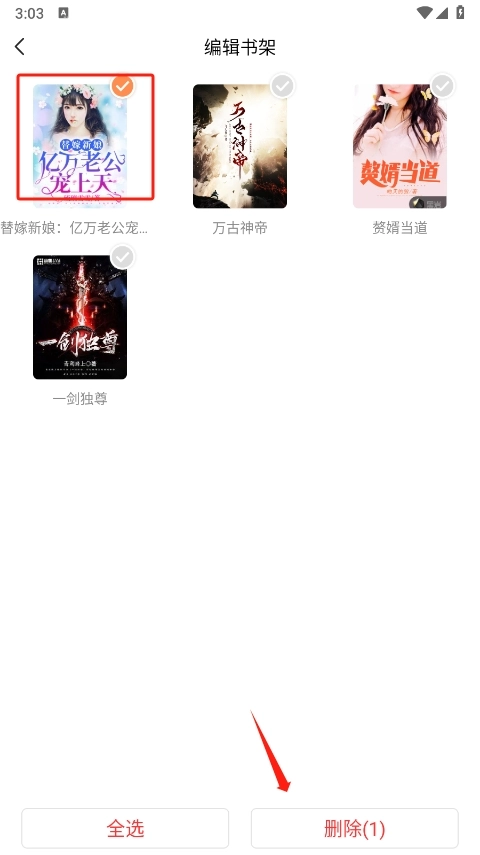 勾选上要删除书签的小说点击删除即可。