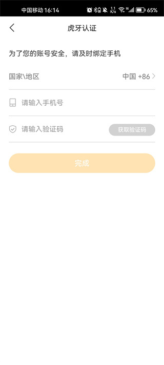 在虎牙的认证界面,必须等认证成功后才能开启直播。你需要先点击“立即认证”,接着在这个界面完成手机号的绑定操作。