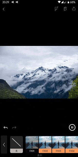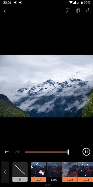 为增强画面意境,例如营造“山中细雨,润物无声”的氛围,可在“覆层”选项中选择“细雨”特效,并通过调节强度控制效果明显程度,避免过度突出影响主体。