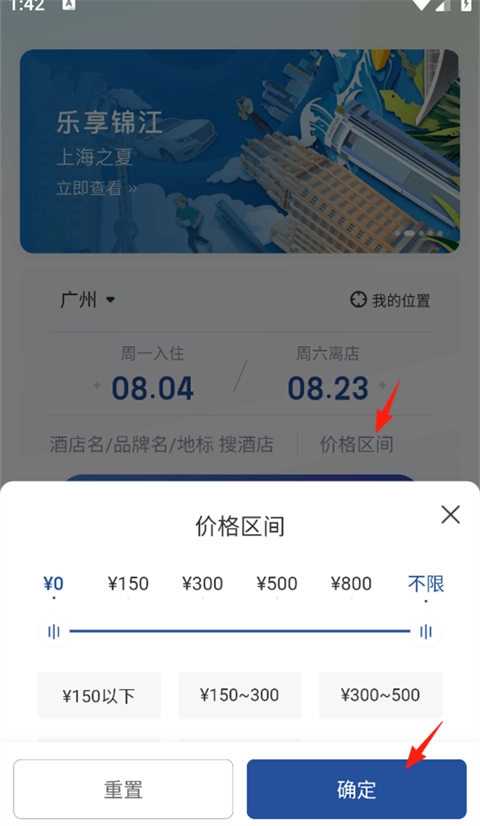 点击屏幕中间的“价格区间”选项,就能自主挑选符合需求的价格范围。