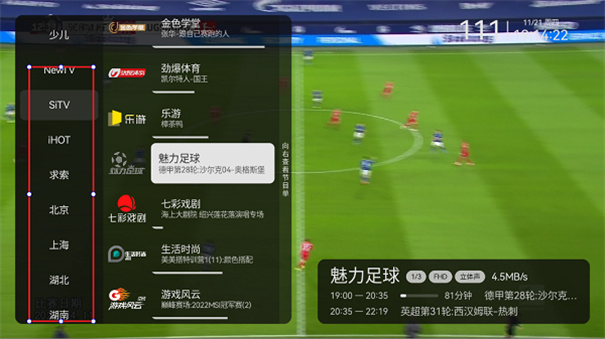 界面遵循极简设计原则,仅保留了电视直播部分,同时让用户能够迅速启动应用并锁定心仪的频道。
