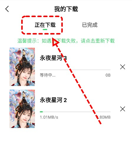 5、完成后,它将出现在已完成的列表中,之后你就可以直接观看了。