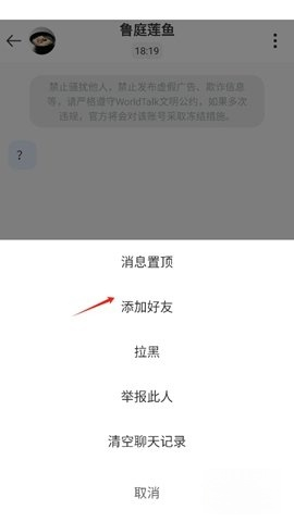 3、点击屏幕右上角的“更多”按钮,选择“添加好友”选项来发起好友请求。