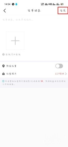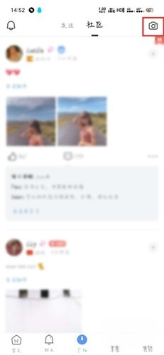 2、在广场页面,点击右上角的相机图标,进入动态编辑页面。