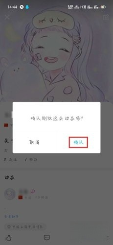 3、当出现确认删除的窗口时,点击【确认】按钮即可删除该动态。