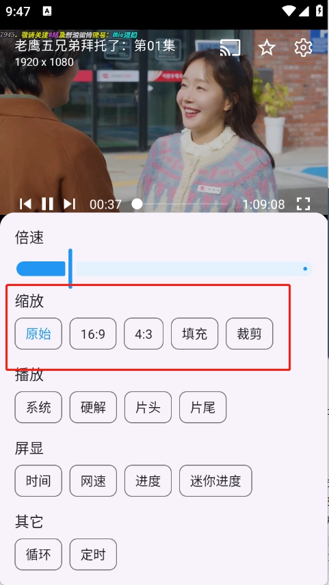 选择画面播放比例即可。