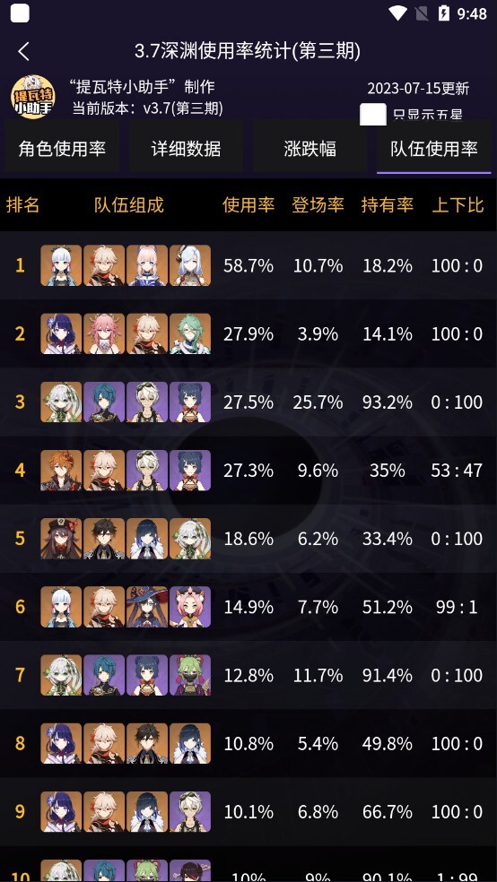 ①打开提瓦特小助手,在更多功能里找到并选择队伍使用率排行。