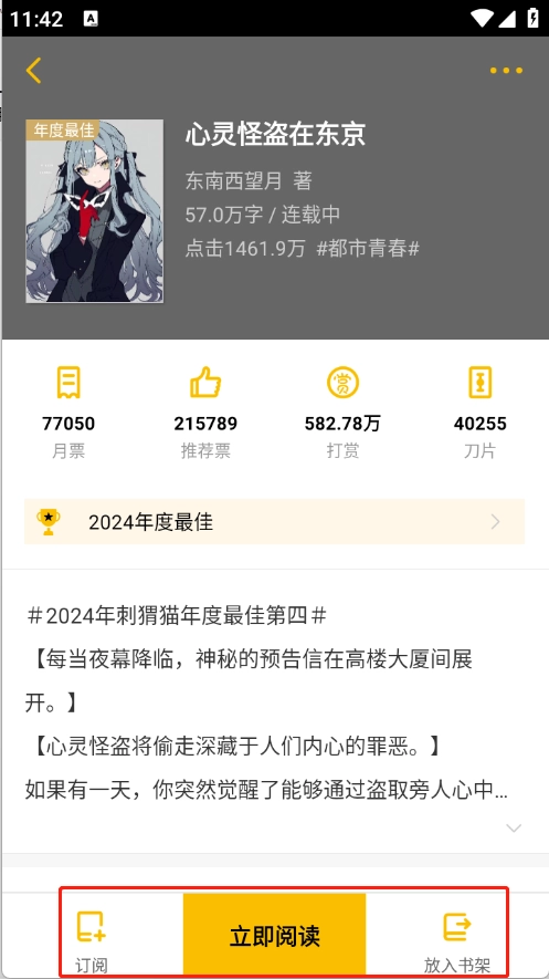 直接点击你想看的小说或漫画,就能把它们加入书架、进行订阅,还能开始阅读。