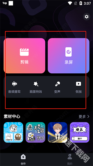 打开必剪就能看到它提供了剪辑、录屏、音频提取、画面特效、变声、倒放、素材等功能。