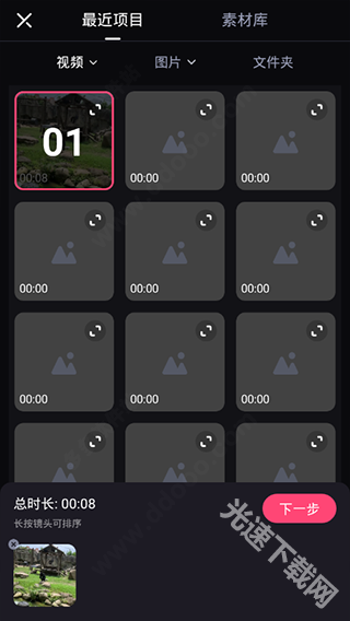 点击剪辑按钮就能开始挑选需要剪辑的素材,并且支持同时选择多个素材内容。