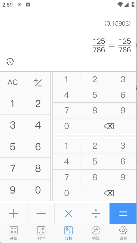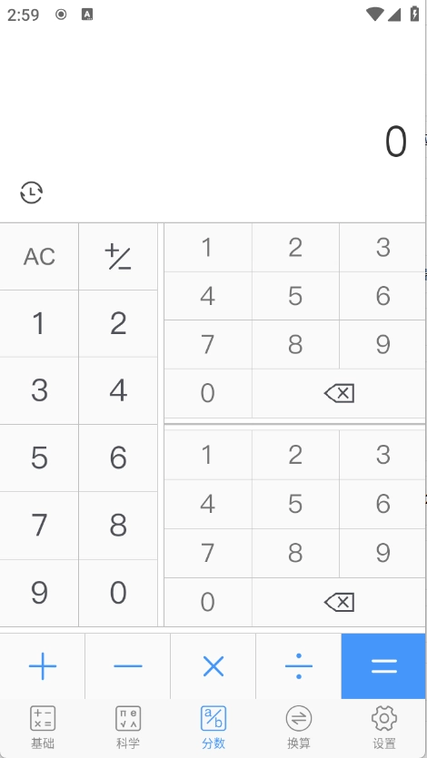 进入后,底部栏里包含多种计算器,像普通计算器、科学计算器以及分数计算器等。