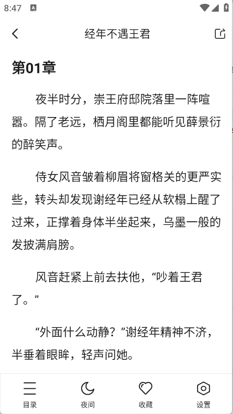 可自定义设置字体大小、阅读背景、翻页方式以及白天/黑夜阅读模式等功能。