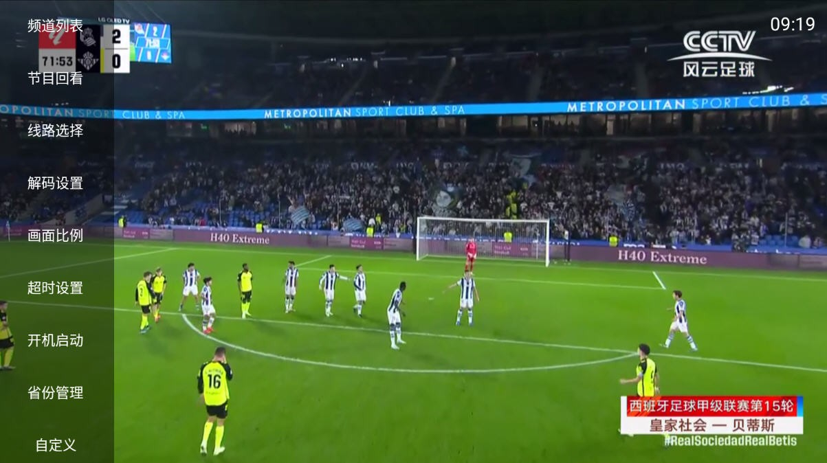2. 点击屏幕左侧,可以看到会出现频道列表、节目回看、线路选择、画面比例等功能区域,这里以点击频道列表为例进行说明。