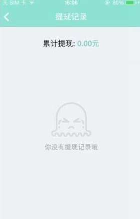提现页面的左上角设有“提现记录”按钮,点击该按钮即可进入查看相应的提现记录(图中展示的是无提现记录时的界面)。