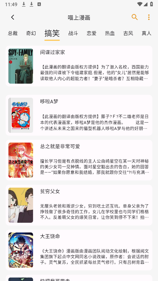 用户能够在猫番阅读软件的主页上,搜索自己喜爱的漫画,进而开展在线或者离线浏览。