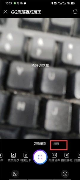 里面会为用户提供万物识别和扫码功能,点击扫码;